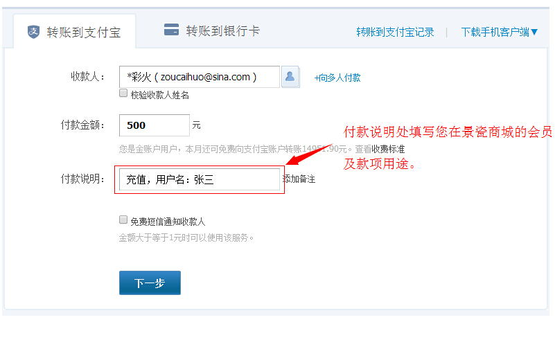 特别提醒:转帐时请备注相关说明。备注格式:您在景瓷商城会员名,用途如:张三,代销会员预存款200元