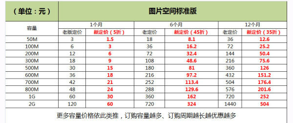 2)费用更低:针对一钻以下的卖家免费使用1G容量,全网卖家再赠送30M空间, 旺铺专业版会员还额外赠送300M的免费容量,后续我们会尽快推出更优惠的续费方案;