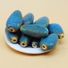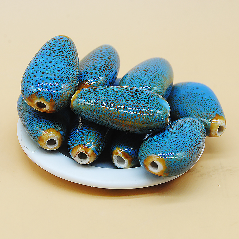 扁水滴27mm珠子花釉蓝