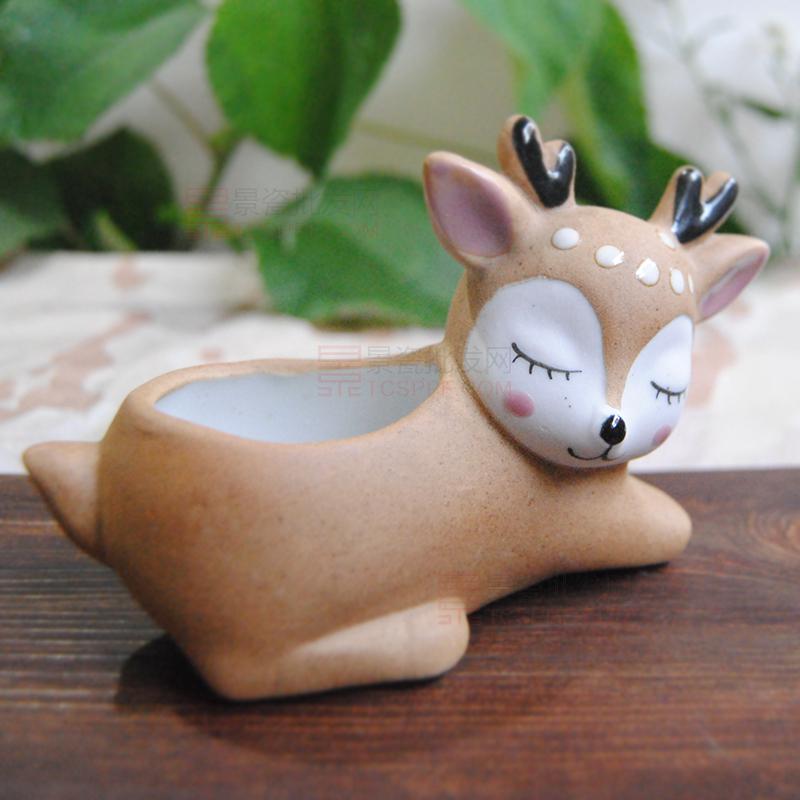 【笑眯眯】小鹿可爱陶瓷多肉花盆